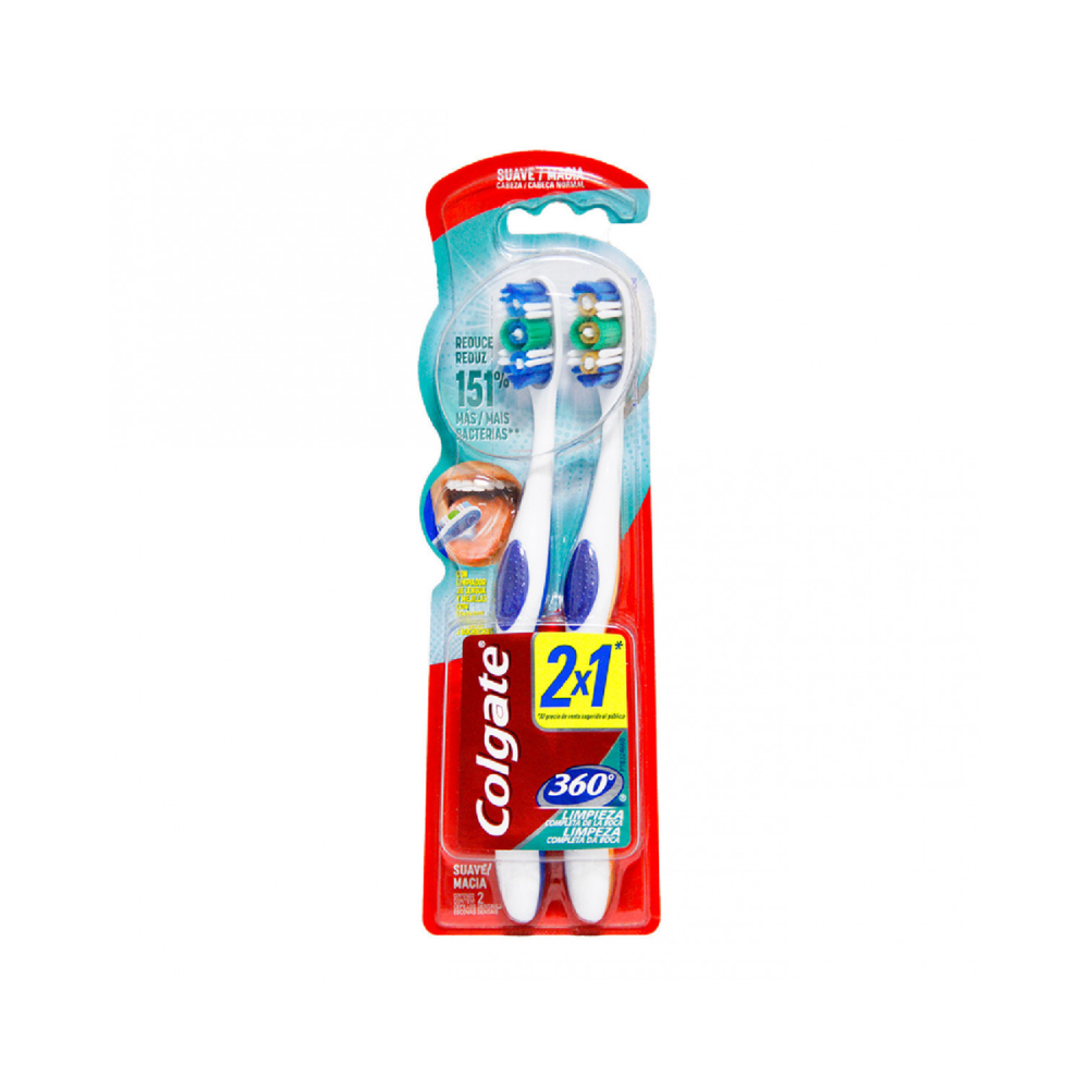 Cepillo Colgate 360 Limpieza Completa Suave x 2 unidades