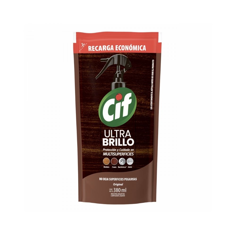 CIF Ultra Brillo Antipolvo 380 ml DP es un limpiador que proporciona un acabado brillante y ayuda a repeler el polvo. Su fórmula avanzada asegura una limpieza profunda y duradera, manteniendo las superficies limpias por más tiempo.