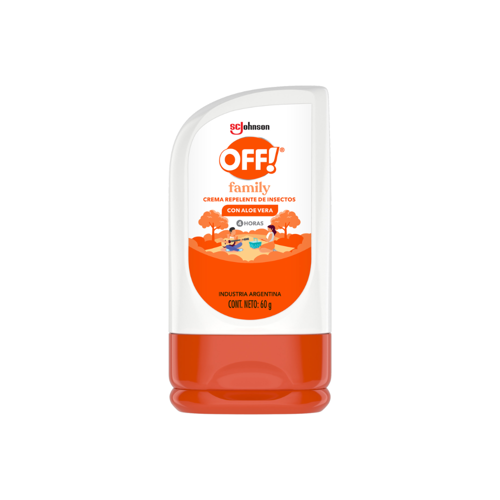 La crema OFF Family con aloe en envase de 60 gr está especialmente diseñada para proteger contra insectos mientras cuida la piel con aloe. Su tamaño compacto es perfecto para llevar en el bolso o mochila, ofreciendo una protección eficaz y conveniente durante tus salidas diarias.