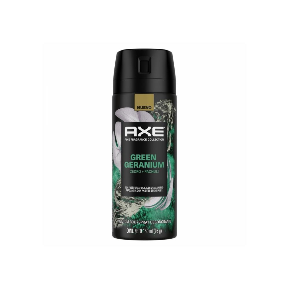 El Desodorante Axe Green Geranium ofrece una protección efectiva de 48 horas con una fragancia fresca que destaca por sus notas de geranio verde. Su fórmula antitranspirante mantiene tu piel fresca y libre de sudor durante todo el día.