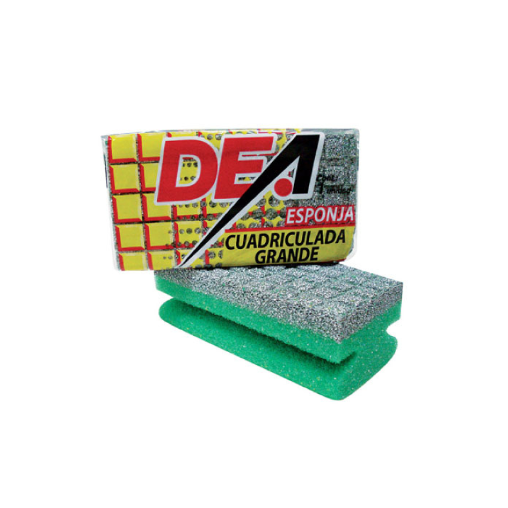La Esponja Dea Cuadriculada Grande es una opción de mayor tamaño que ofrece mayor cobertura y rapidez a la hora de limpiar superficies amplias. Su textura cuadriculada le permite atrapar mejor la suciedad, haciendo que la limpieza sea más efectiva en cada pasada.