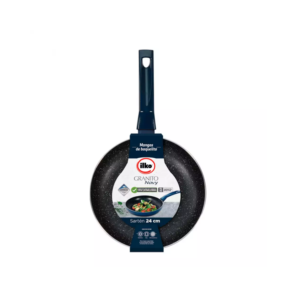 Esta sartén Ilko con recubrimiento tipo granito de 24 cm está diseñada para una cocción eficiente y pareja, ideal para el uso diario en todo tipo de cocinas. Su superficie antiadherente permite preparar alimentos con menor cantidad de aceite, facilitando una cocina más práctica y saludable. Su tamaño es perfecto para salteados, frituras livianas y preparaciones rápidas.