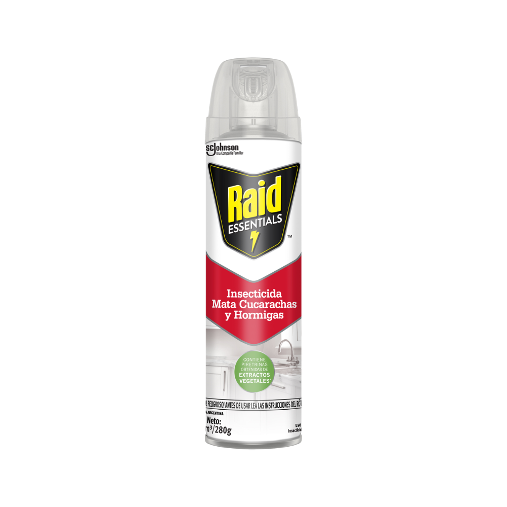 El Insecticida Raid Essentials Cucaracha en aerosol de 360 ml es una fórmula especializada para eliminar rápidamente cucarachas y otros insectos rastreros. Penetra en grietas y rincones, atacando directamente donde se esconden y ofreciendo protección prolongada.