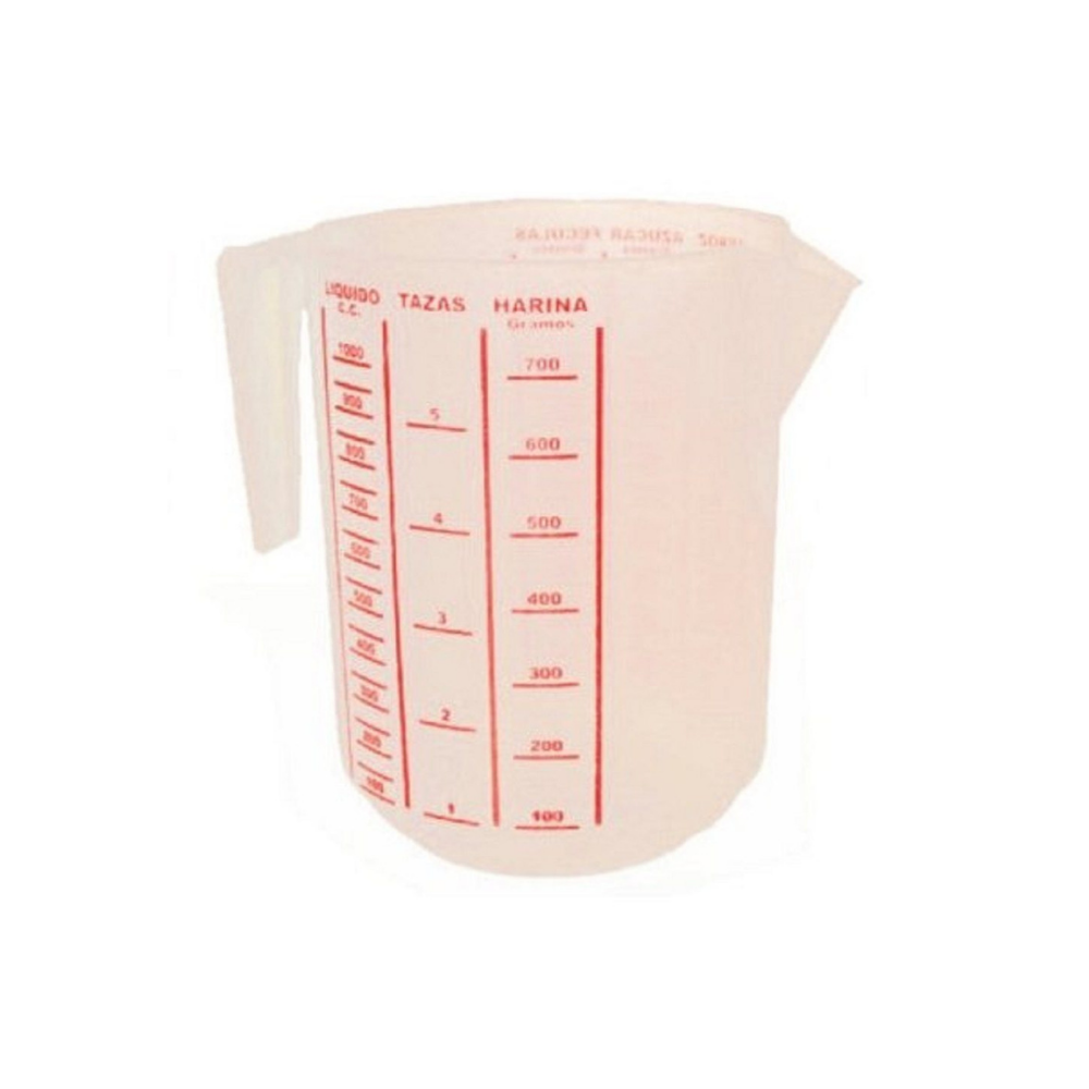 Fabricada en plástico resistente, esta jarra es fácil de manejar y limpiar. Su diseño funcional facilita la preparación de recetas, ofreciendo una manera práctica y fiable de medir ingredientes tanto para el hogar como para usos profesionales en la cocina.