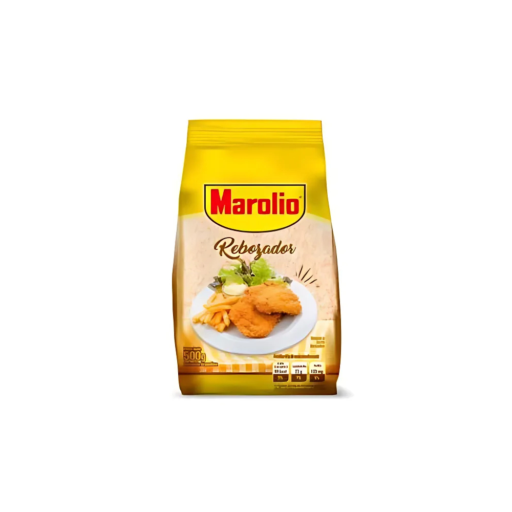 Rebozador Marolio en envase de 500 gramos, un producto diseñado para ofrecer un acabado crujiente y dorado a tus alimentos. Este rebozador es ideal para empanadas, milanesas y otros platos fritos.