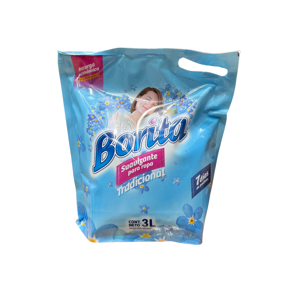 El Suavizante Borita Tradicional de 3 litros en envase DP combina suavidad y aroma clásico para toda la ropa de la familia. Deja las prendas delicadas y perfumadas con un toque agradable y duradero.